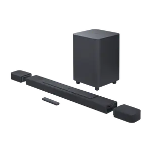 Ver el productoJBL Bar 1000 te cubre con una esfera de sonido envolvente 3D, gracias a cuatro unidades con salida superior, un altavoz de graves estruendoso y altavoces inalámbricos desmontables.