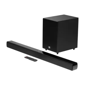 Ver el productoLa JBL Cinema SB120 es una barra de sonido de perfil bajo que encaja perfectamente frente al televisor. Incluye Bluetooth para que disfrutes de la música sin cables y conexión HDMI ARC para una experiencia de usuario simplificada. Combina 110 W de potencia, dos altavoces de gama completa y dos altavoces de graves de 2,5 " incorporados en la barra, un subwoofer incorporado para graves profundos y Dolby digital para ofrecerte la mejor experiencia auditiva.